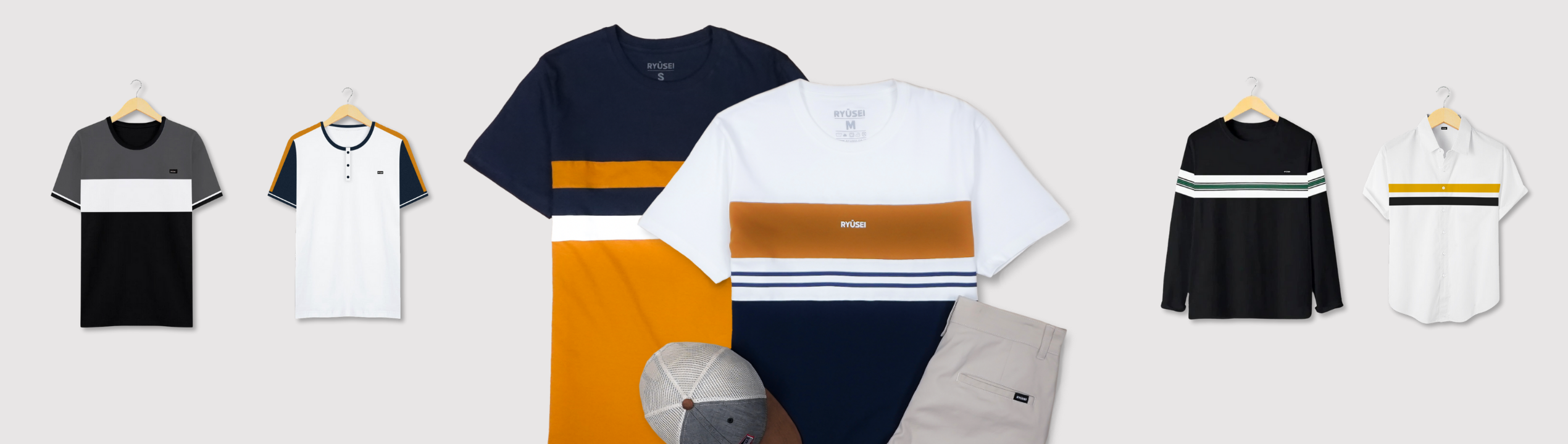 Outfit dengan bahan yang nyaman menjadi andalan untuk lebih bebas bergerak. Memiliki tampilan minimalis dengan sentuhan orisinal Ryusei.