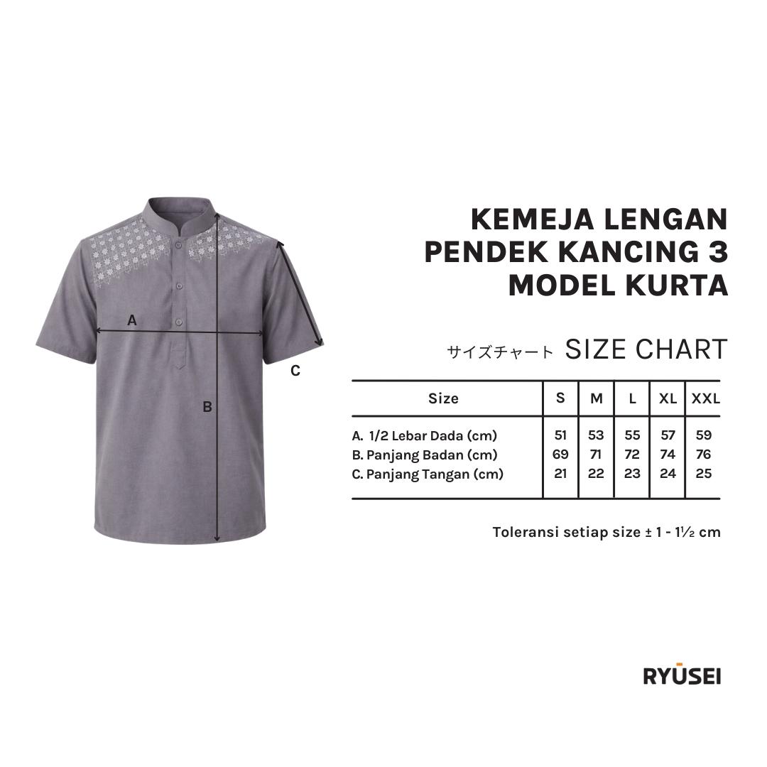 Ryusei Kemeja Kerah Koko Lengan Pendek Kenshiro dirancang dengan siluet modern dan sentuhan bordir geometris elegan di area dada atas, menciptakan tampilan maskulin yang bersih dan berkelas. Dengan model kancing placket pendek (half button) yang memberikan kesan unik dan stylish. Menggunakan bahan cotton mix yang adem dan nyaman, cocok untuk ibadah, kerja santai, maupun aktivitas harian. Dapat dipadupadankan dengan jenis bawahan apapun. Tersedia warna Black, White, dan Grey.